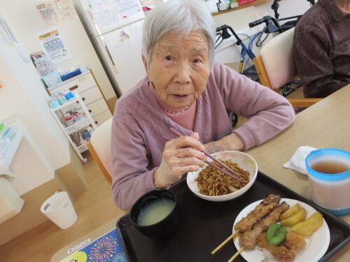 昼食は屋台飯🍗🍻お祭り気分でいただきます(^▽^)/