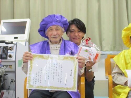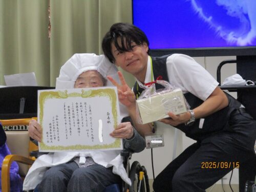 施設長より、表彰状と心ばかりのプレゼントをお渡しさせていただきました。