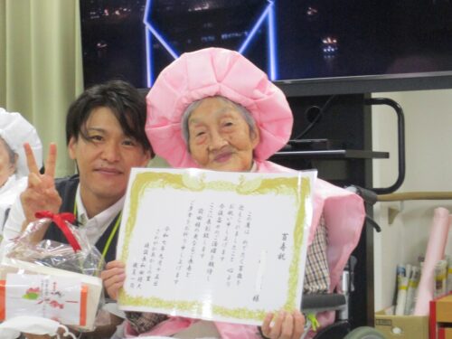 傘寿の方1名、米寿の方2名、卒寿の方2名、白寿の方1名、百寿の方2名