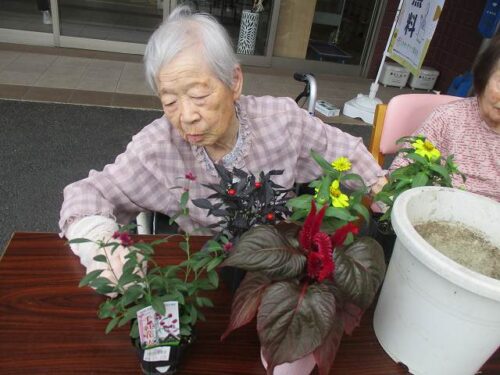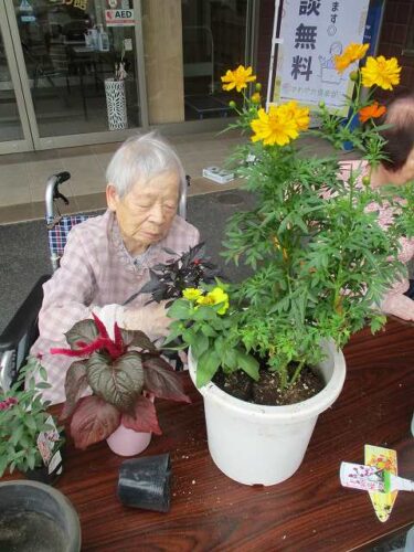 入居者様には「この花たちは寄せ植えの方がいいわ」