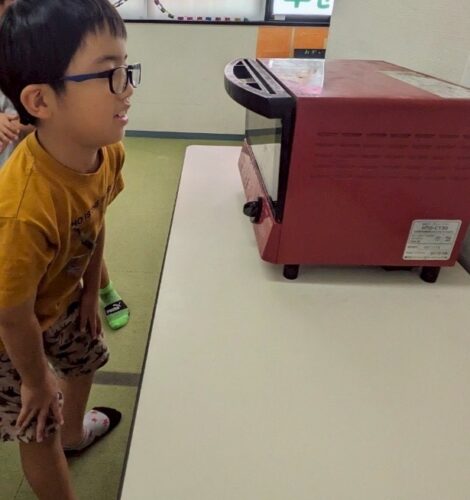 オーブンで焼けるのを待っています。まだかなまだかな🤭