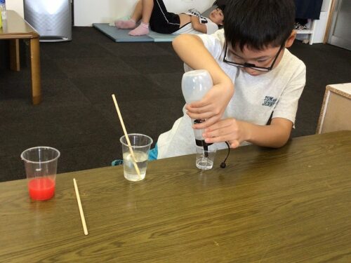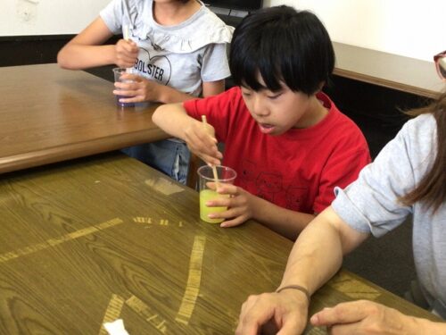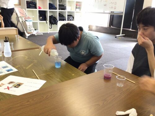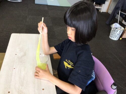 自分で色水を2種類使って紫色を作っている子もいました✨