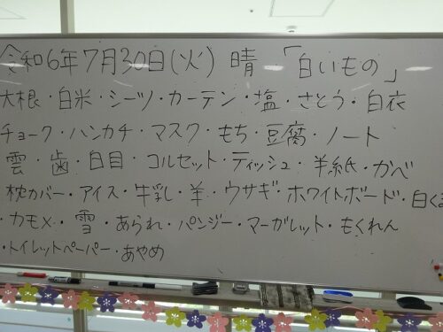 さわやか室蘭弐番館 2階 30日活力朝礼♪ 2024-07-31 2024-07-31 皆様こんにちは♪ 昨日の様子をお届けします 9時からラジオ体操です 暑さに負けず体を動かします 頭の体操は白い物お答え頂きました 笑い声溢れる一日になります様に☆