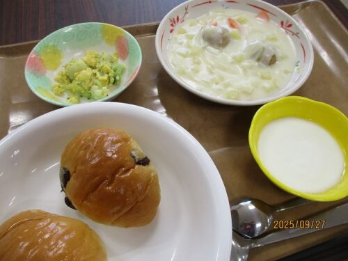 ロールパンとシチューでした。