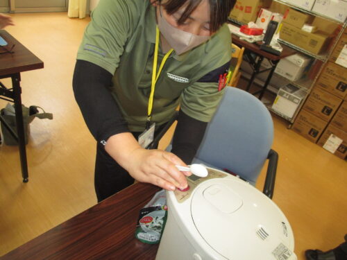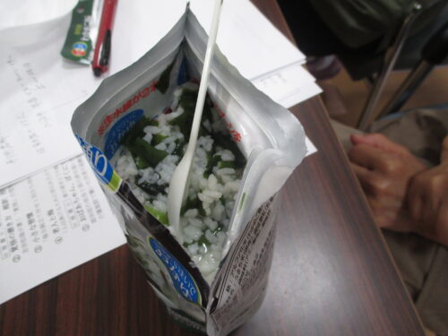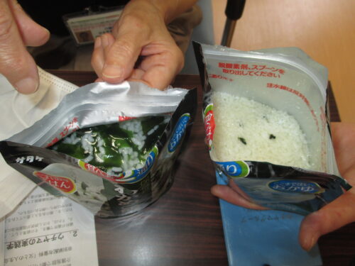 災害訓練の一環として、非常食の作り方から実食体験を行いました。