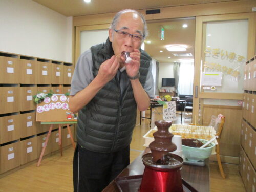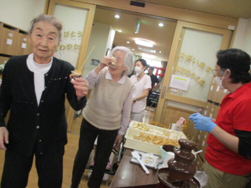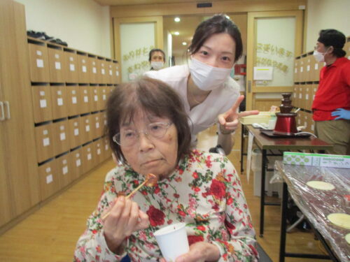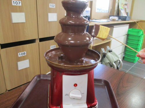 ゲームで盛り上がった次は甘~い😋チョコレートフォンデュ