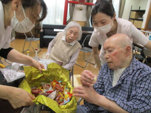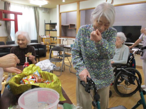 お菓子のつかみ取りですね☺ 楽しい🎵