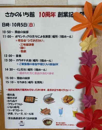 今年の秋祭りはさかのいち館10周年創業記念祭と同時に行います