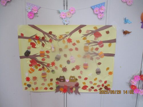 ご入居者様に貼っていただき秋らしい壁紙ができつつあります。