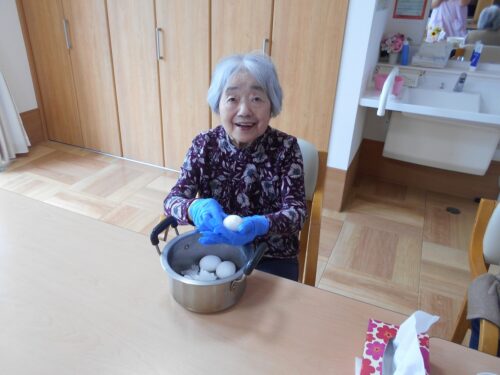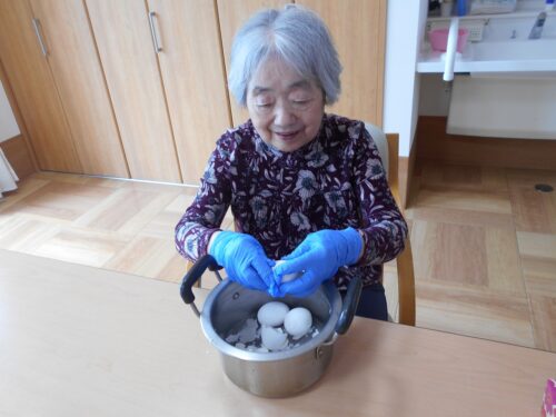 さわやかグループホーム なすしおばら つつじユニットの様子 2025-10-01 2025-09-29 昼食に使う『ゆで卵』を皆さまで剥いて頂きました🥚🥚🥚 きれいに剥くのは結構難しいですよね。 『鶏肉と大根煮』の良い付け合わせになりました(*^_^*)