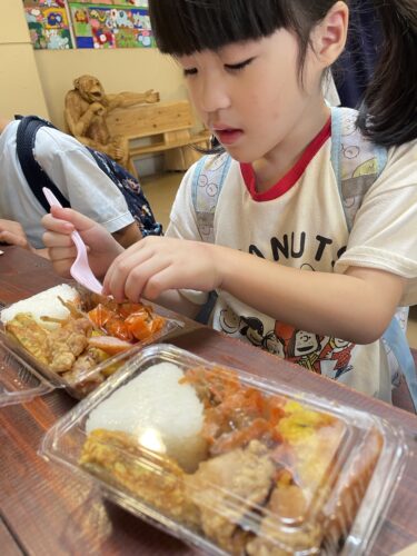 まずは、みんなでお弁当を食べますΨ( 'ч' ☆)