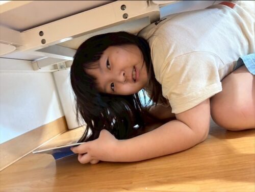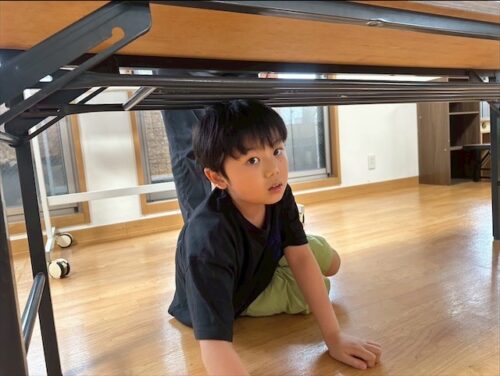 すぐ動くことは難しいですが、職員の「机の下に隠れて!」の声にみんな隠れて安全を確保することができました☺️