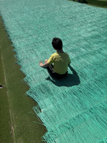 芝滑りも体験😏