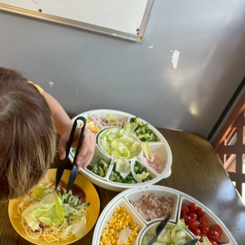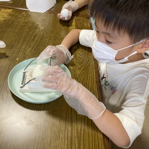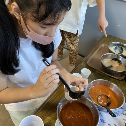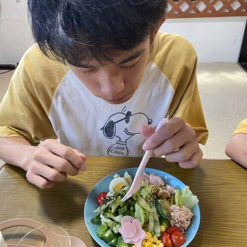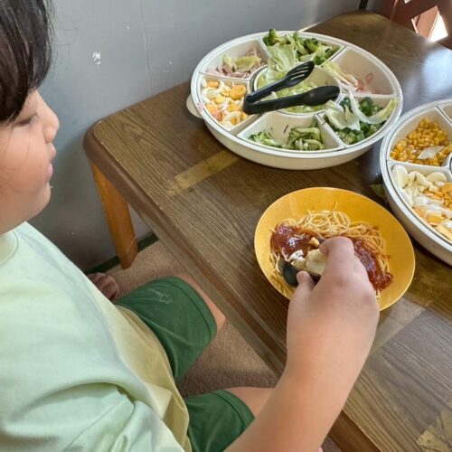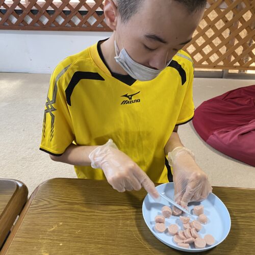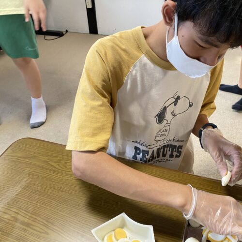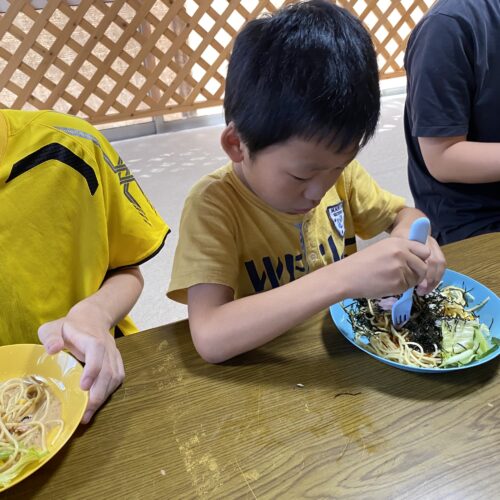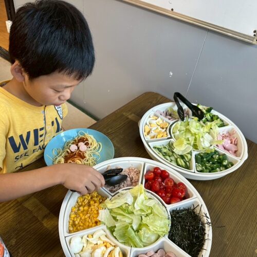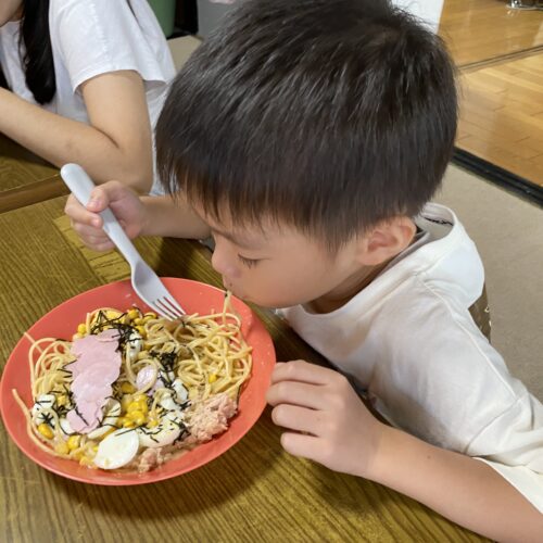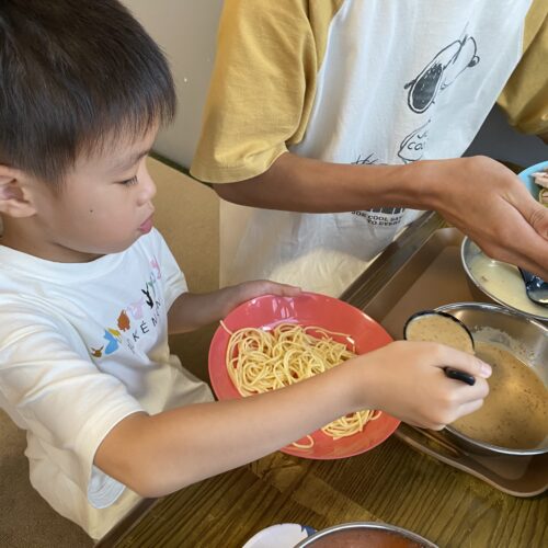 まずはパスタのトッピングの具をみんなで作って行くよ!