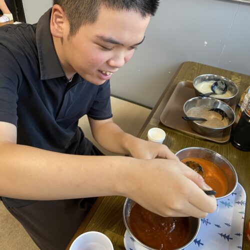 ソースはどれがいいかなぁ❓味見してみよう❤
