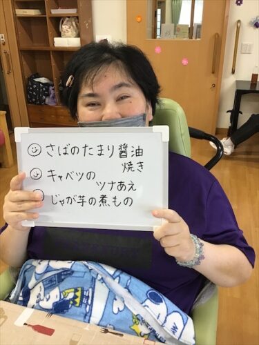 準備が出来ると昼食メニュー案内の当番さんの出番です🙋♀️