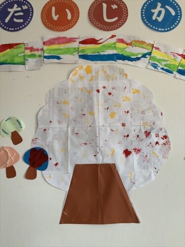 先日、制作したきのこ🍄のそばに紅葉した大樹ができました🤗