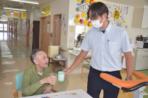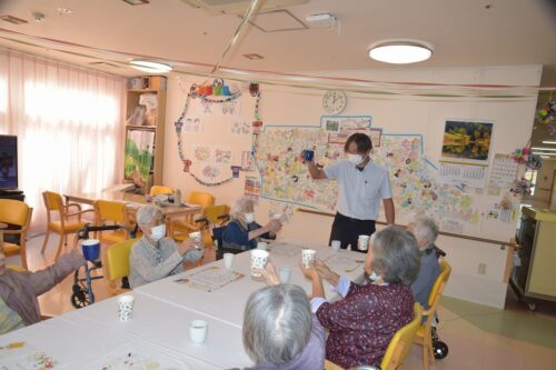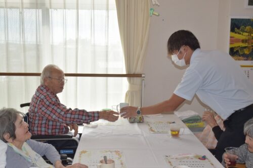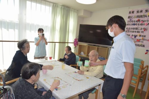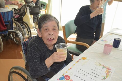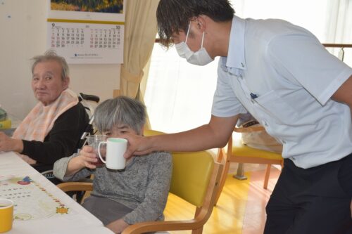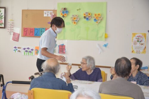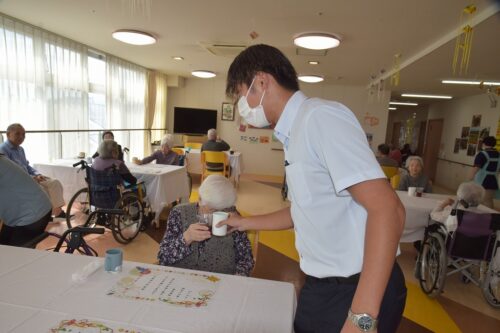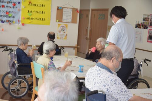 秋岡施設長が各フロアを回り乾杯の音頭を取りました!