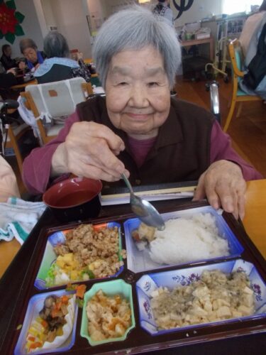 敬老会が終わったら、昼食です。今回はお弁当です😋
