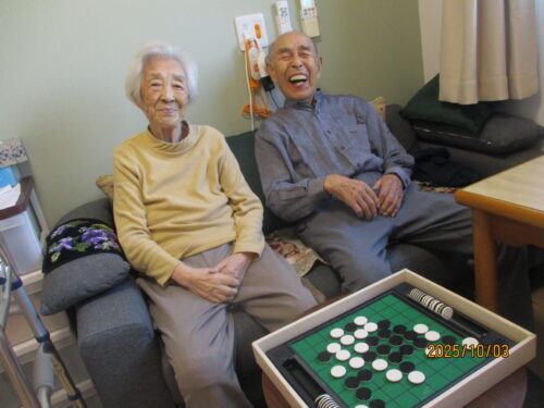 オセロありますけれど五目並べを楽しんでいたました。