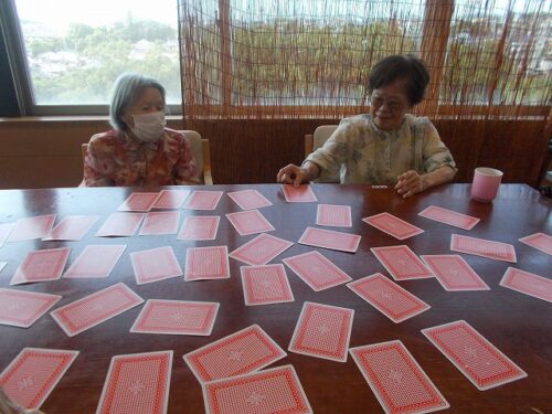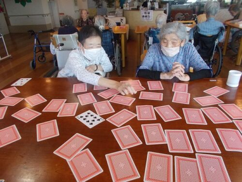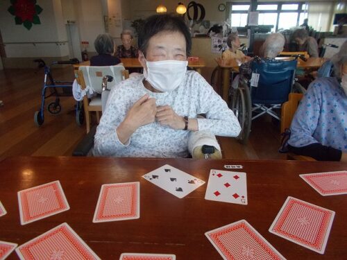 さわやかレークサイド中の原 トランプレク 2024-08-01 2024-08-01 こんにちは😊 今回は、トランプを使って神経衰弱を行いました✨ 皆様「どこかしら」と楽しそうに探されていました😊 ペアが出来てとても嬉しそうです🤗 今後も楽しいレクを色々していきたいと思います。 担当 高岸