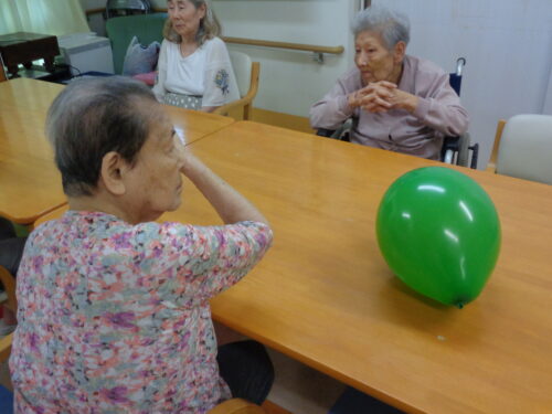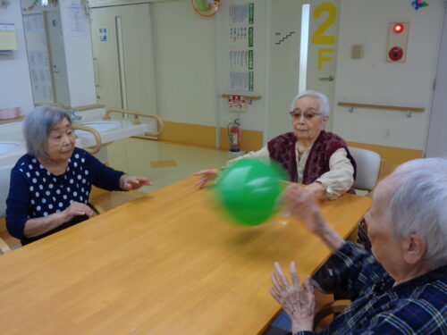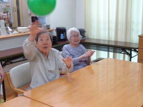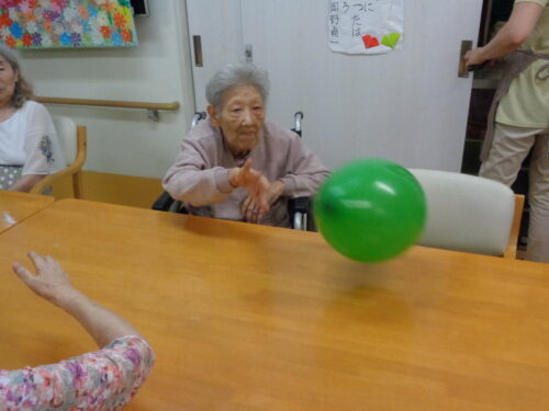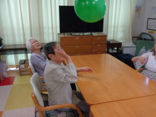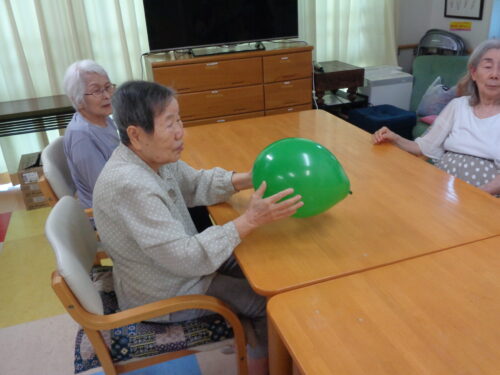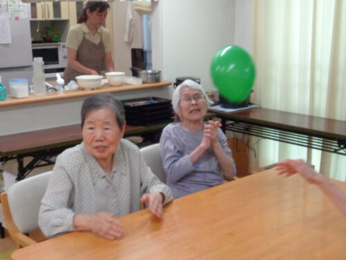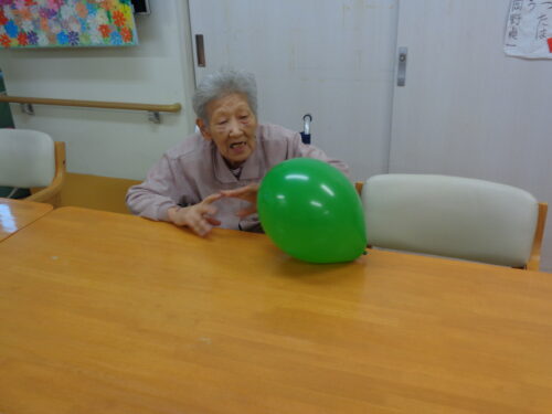 ふうせんバレー。シンプルな遊びですが、椅子に座りながらでも運動になる実用的な遊びです♪