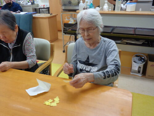 昨年に続いて今年もなかばる館では、文化祭に出す作品を2Fと3Fの入居者様達、合同で作ることになりました。