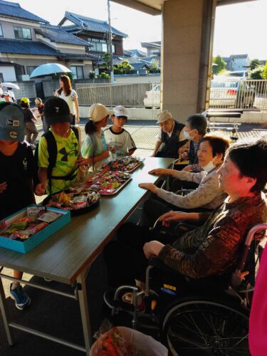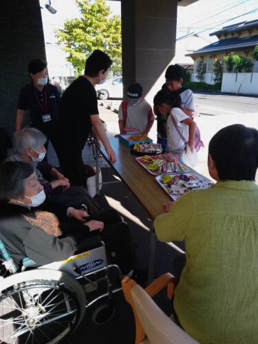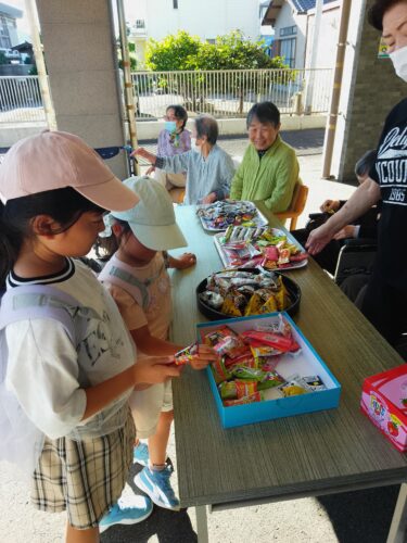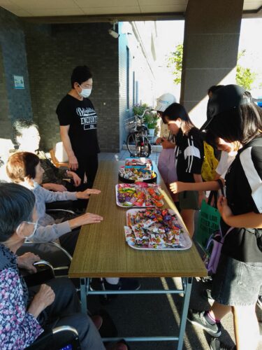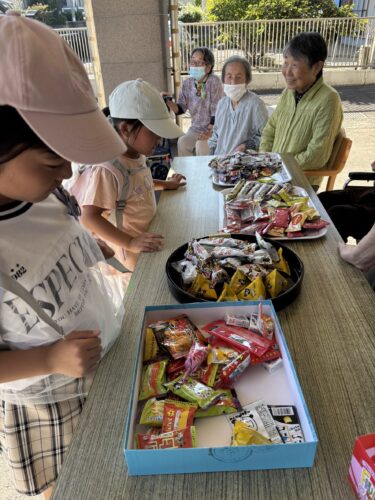 近所の子供たちに玄関先でお菓子を配るんですよ😉