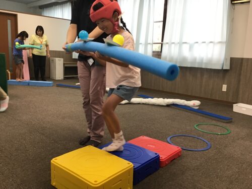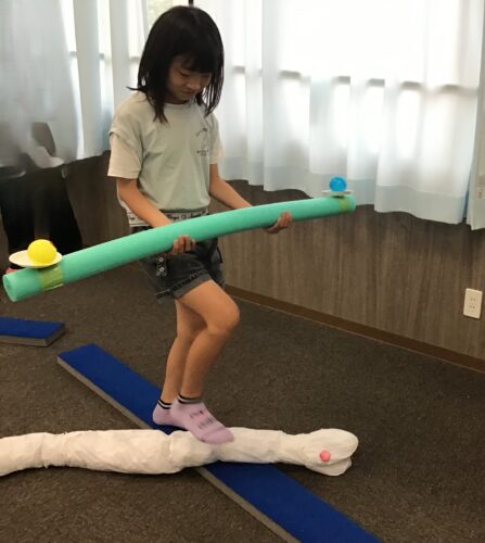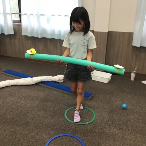 今回の活動ではバランス感覚だけでなく、「スティックの長さを考慮する空間認識力」や「バランスボールを避ける瞬間的な判断力」など、さまざまな能力が試されたバランスサーキットでした