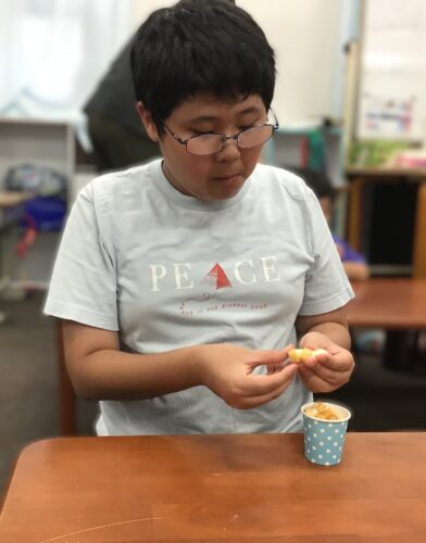 今回のおやつは、ポテコ×さけるチーズの組み合わせた「さけコ」です♩