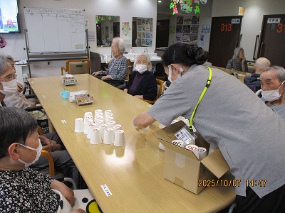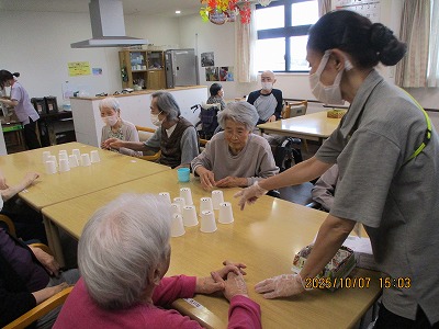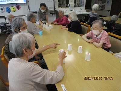 今日のレクリエーションは紙コップを使ったレクリエーションを行いました🥤