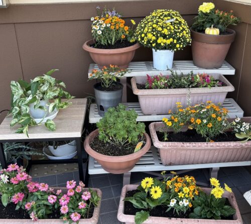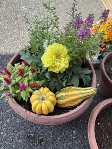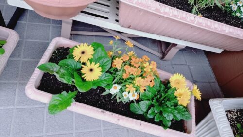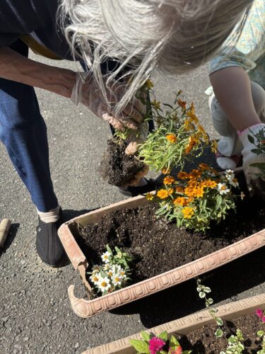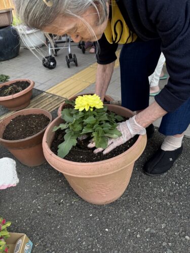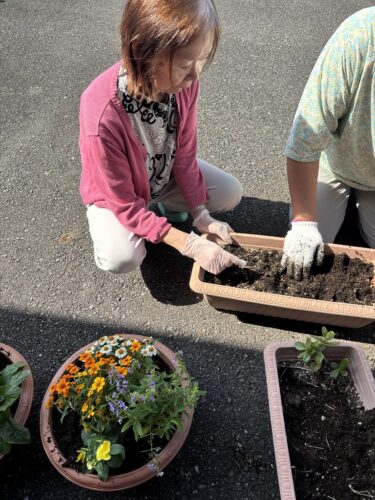 お花が好きな入居者様とお花の寄せ植えを行いました。