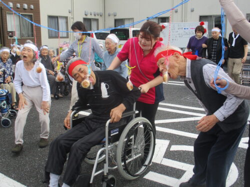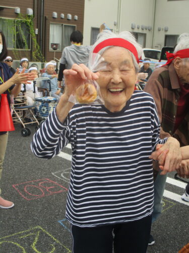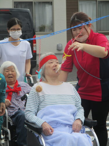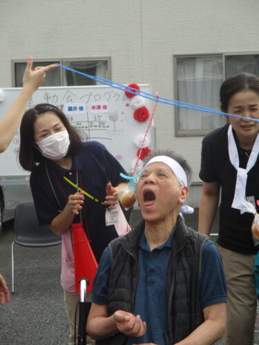 さわやかひだか館 大運動会 Part4 2025-10-15 2025-10-15 ひだか館 大運動会の続報 第3弾です😃 今日は皆さんお楽しみのパン食い競争です🥖 大きな口を開け悪戦苦闘しながらも頑張っています👍 上手に取れて嬉しそう😄💕 さわやかひだか館 ブログ担当😃