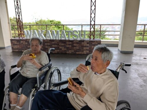 高塔山でのひと時ものんびり貸し切り状態で、皆様気持ち良さそうにのんびり景色見られたり、オヤツ堪能されたりと