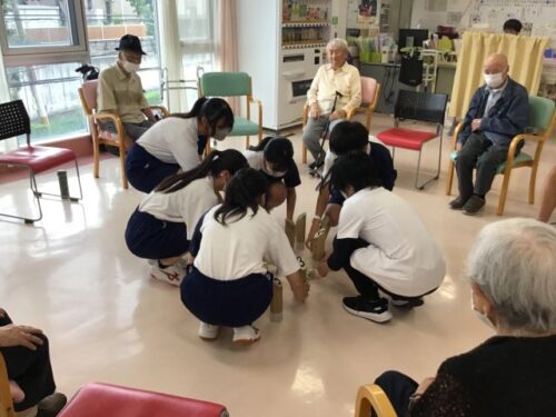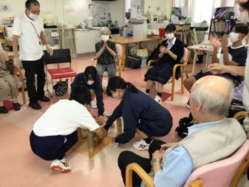 八幡高校の学生さんが奉仕活動の一環で清田館に来られご入居者様・ご利用者様との