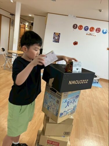 先日は空き箱を使って空き箱タワーの活動を行いました!