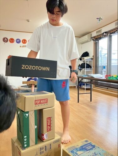 また、小学生の児童が一生懸命箱を積んでいると、中学生の児童がタワーが倒れないように支えてくれたり、箱を手渡ししてサポートしてくれる様子も見受けられました!☺️