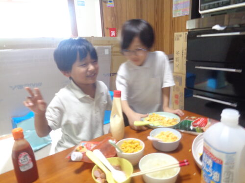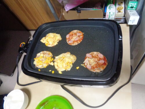 餃子の皮の上にケチャップを塗って具材をのせています‼