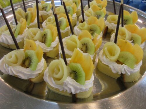 左下に乗っているのは、桃の缶詰で作られたお花✿