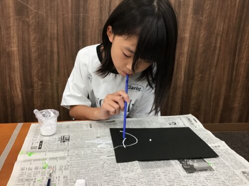 ストローの先を器用に動かし、細~いラインができました😀