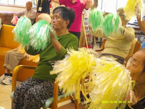 さわやか直方館 楽しくポンポン😊 2025-10-12 2025-10-11 こんにちは🎵直方館です🎉 10月だというのに、まだまだ日中は夏の暑さですね~💦 とある日の活力朝礼の様子です🌈 皆さんはポンポンを持って、楽しんでいらっしゃいます😊 今日も、一日元気で頑張っていきましょう🥰 担当:おおくぼ