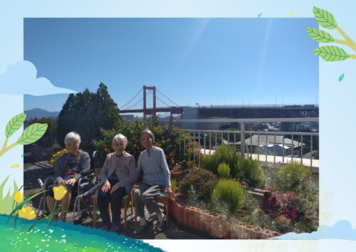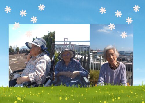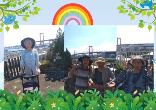 さわやか海響館 屋上散歩を満喫しました.✽.。 2025-10-13 2025-10-11 とっても天気が良い日だったので 入居者様みんなで 屋上に散歩に行きました👍🎶 きれいな青空が広がっていて 本当に気持ちの良い日でした🌞 10月でこの暑さ・暖かさにはびっくりですが おかげで良い 日光浴日和になりました✌️😉 🐸楠田🐸