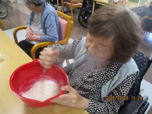 今回はおやつレクでフルーチェを作り皆様で召し上がりました。