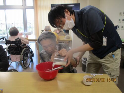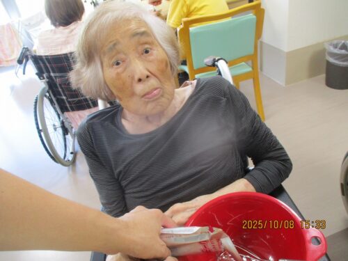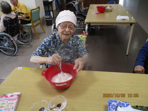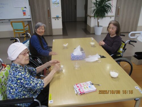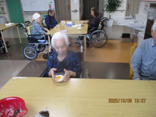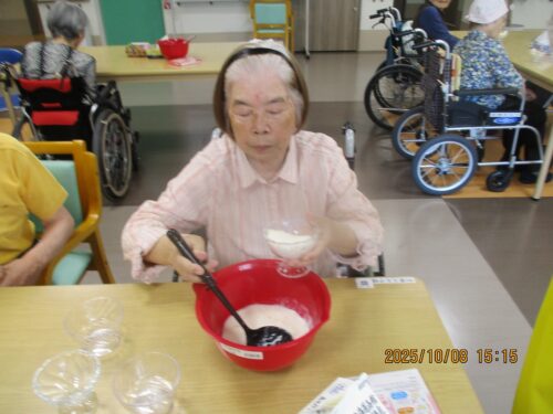 今回も前回に引き続きおやつレクのフルーチェのご様子をご報告いたします。