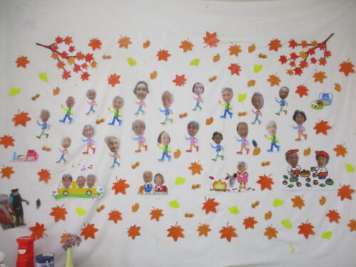 さっそくご入居者の皆様が飾りつけの前に集まり
