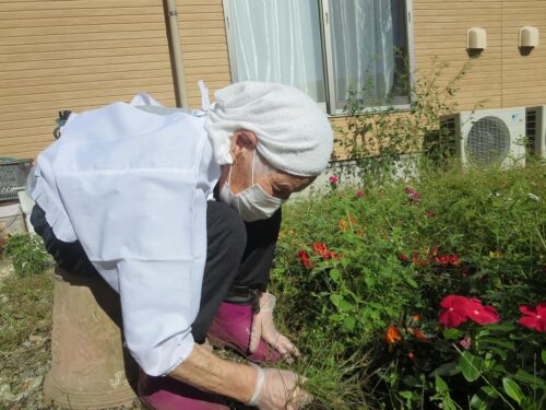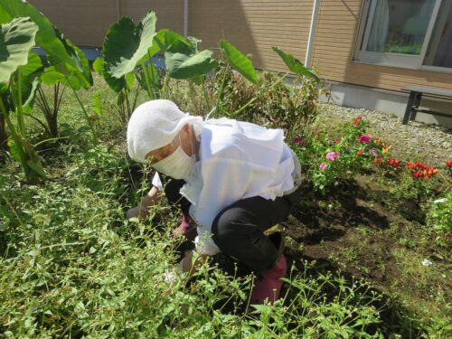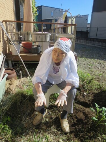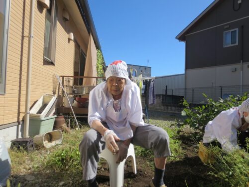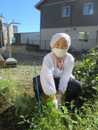 腰を曲げたり、椅子に座ったり工夫なさって作業されていますねぇ・・・