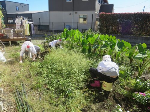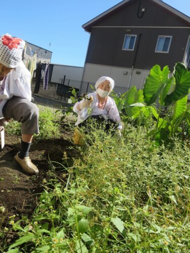 草ぼうぼうで気になっていた、畑の草取りをして頂きました。