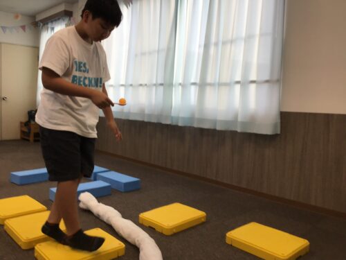 カゴの中のピンポン玉を全て運んだチームの勝ち🔥
