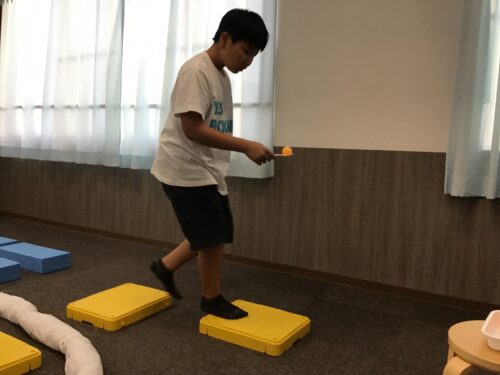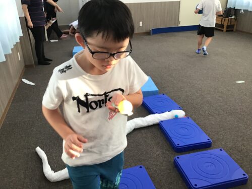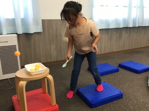 ピンポン玉をスプーンに乗せ、落とさないように運び次の人にバトンパス✨