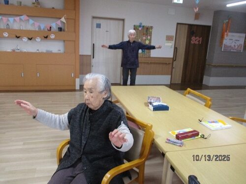 さわやか室蘭弐番館 3階 13日活力朝礼♪ 2025-10-14 2025-10-13 皆様こんにちは♪ 昨日の様子をお届けします まずは日付と天気の確認です 続いてラジオ体操です 続いて”元気いきいき体操”です 上半身の運動です 楽しい一日になります様に☆